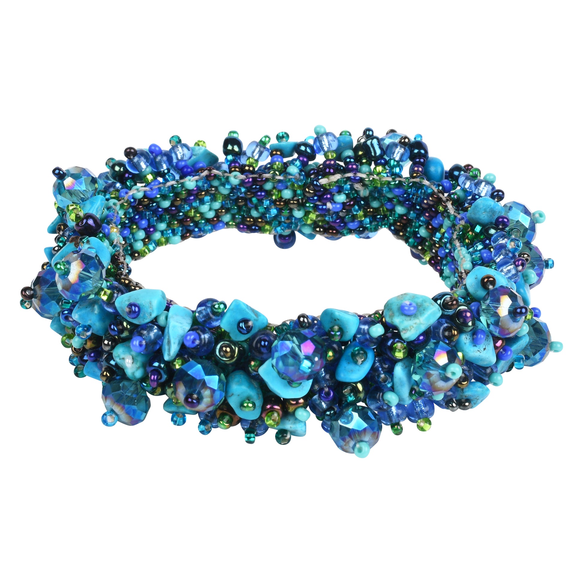 An explosion of joy from this bracelet! Secured with a strong magnetic clasp for safe travels. The pieces in the joy collection are an artistic expression of joyous Mayan women and the colorful Guatemalan culture. Every one of the sparkling glass beads holds a story of better community and better lives. Wear it as a reminder of women helping women.
